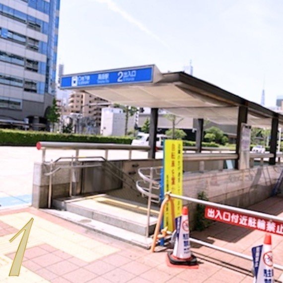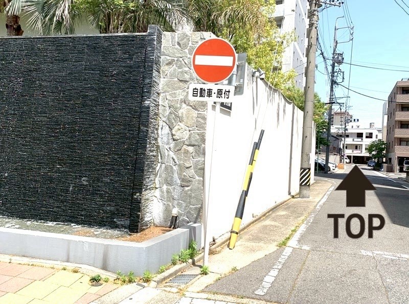「高岳駅2番出口」を出て、そのまままっすぐ直進します(方角は東)⑴
