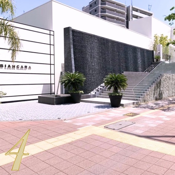 まっすぐ進んでいただき、「最初の信号」を渡ると、結婚式場「BIANCARA」があります⑷